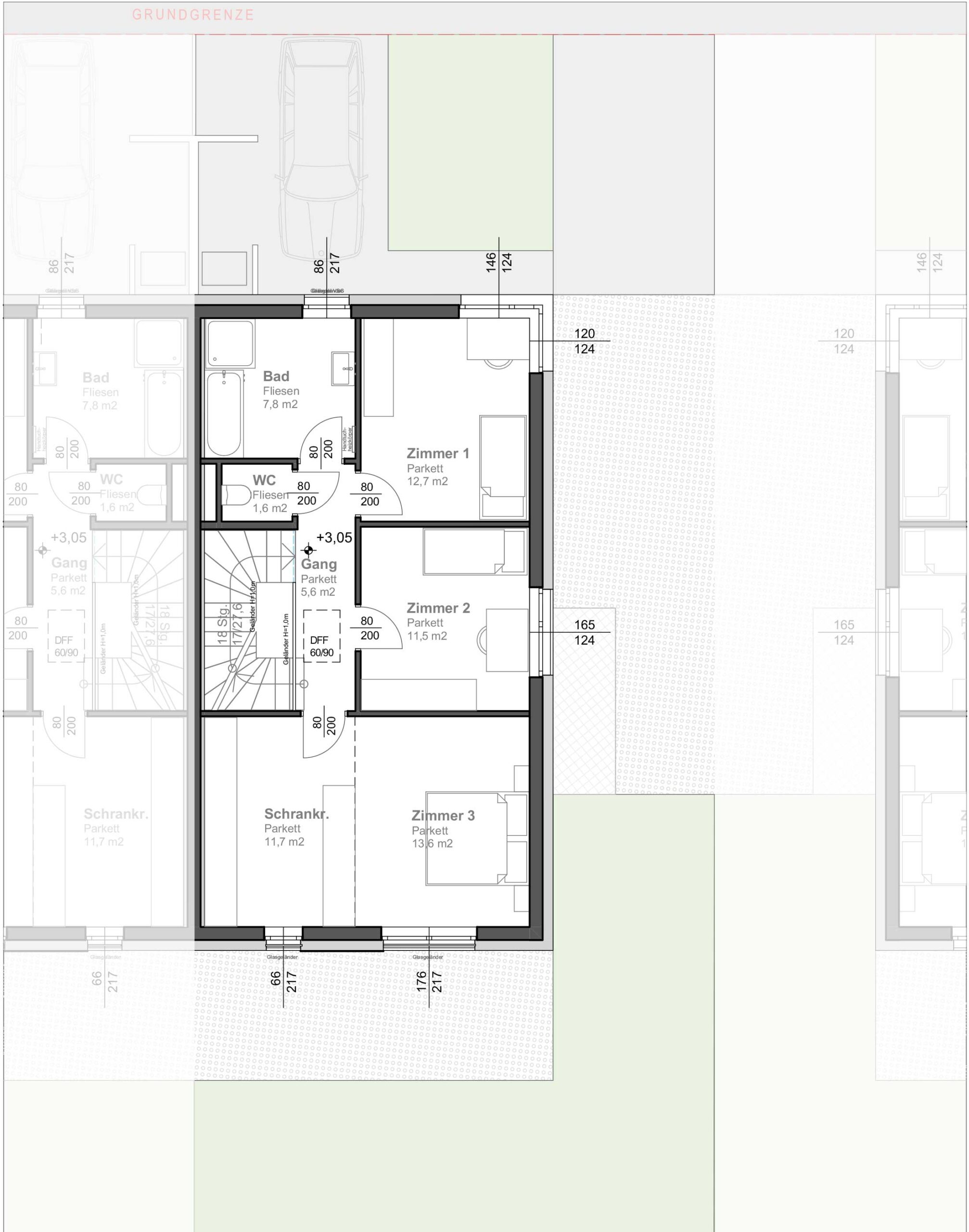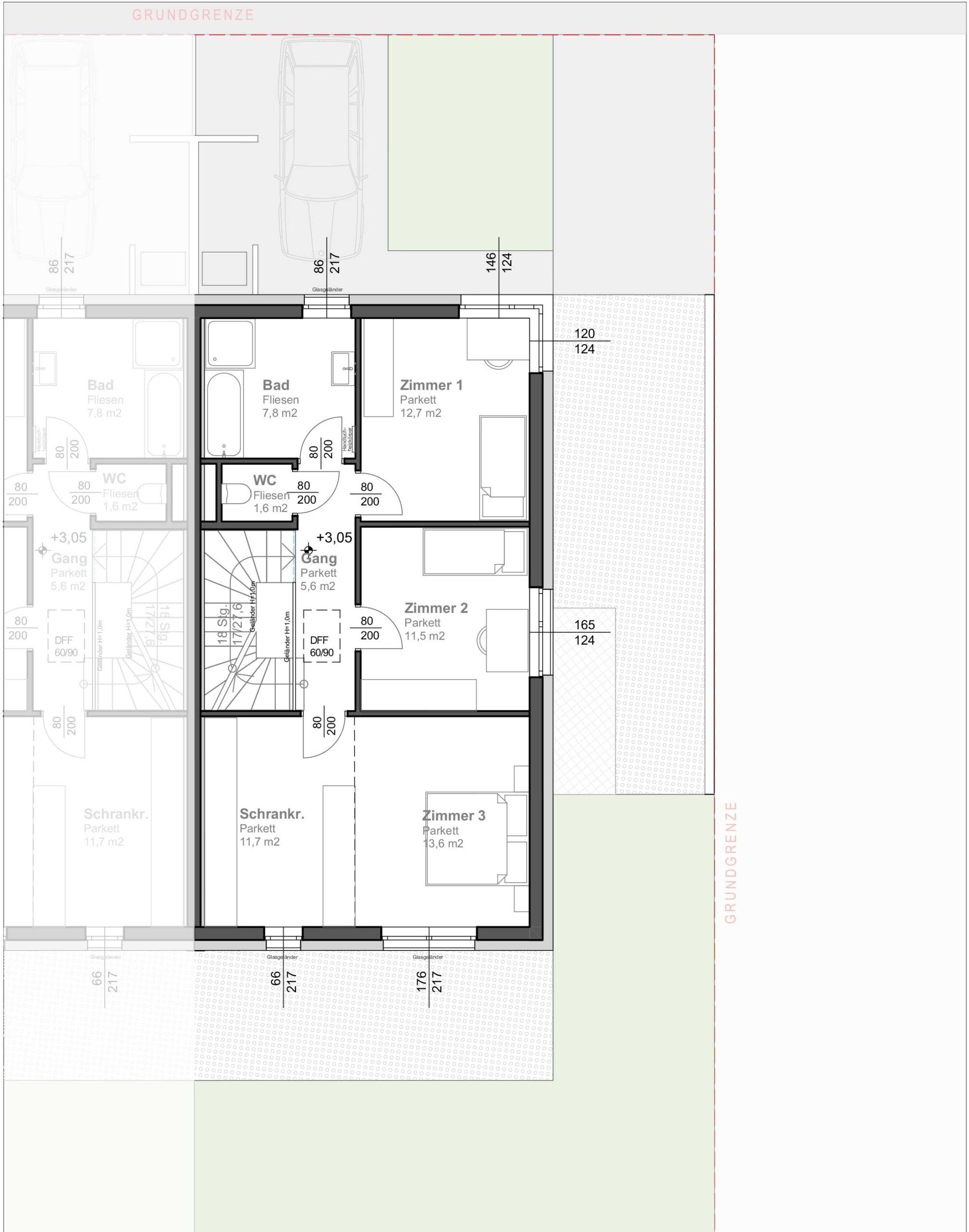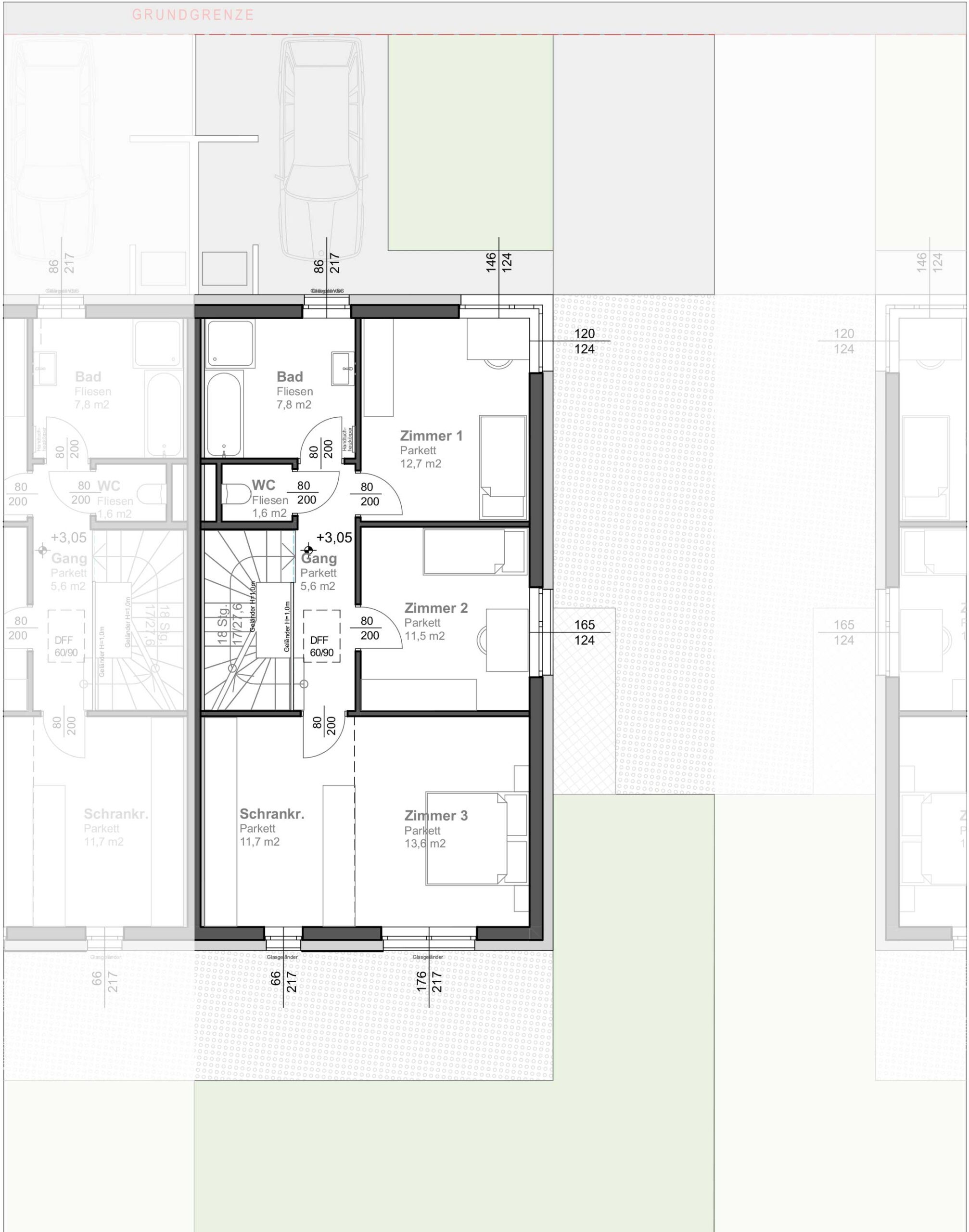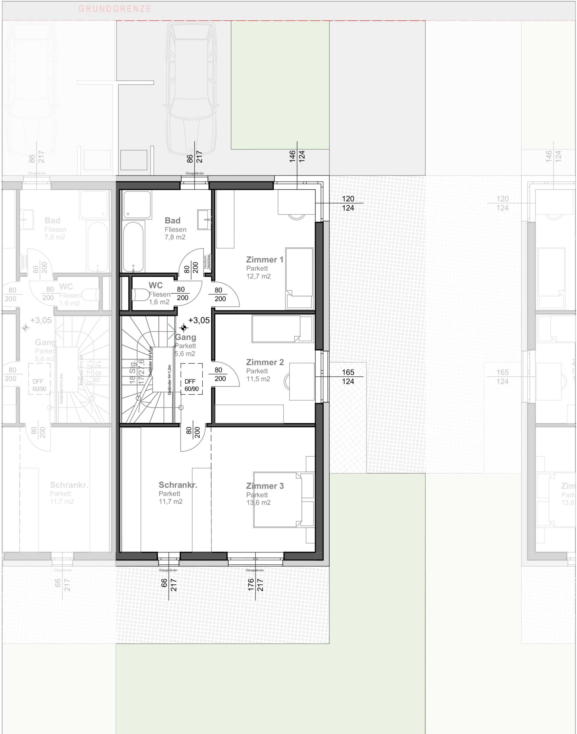 Alle Häuser verfügen über großzügige Eigengärten und 2 Stellplätze (einer davon überdacht).